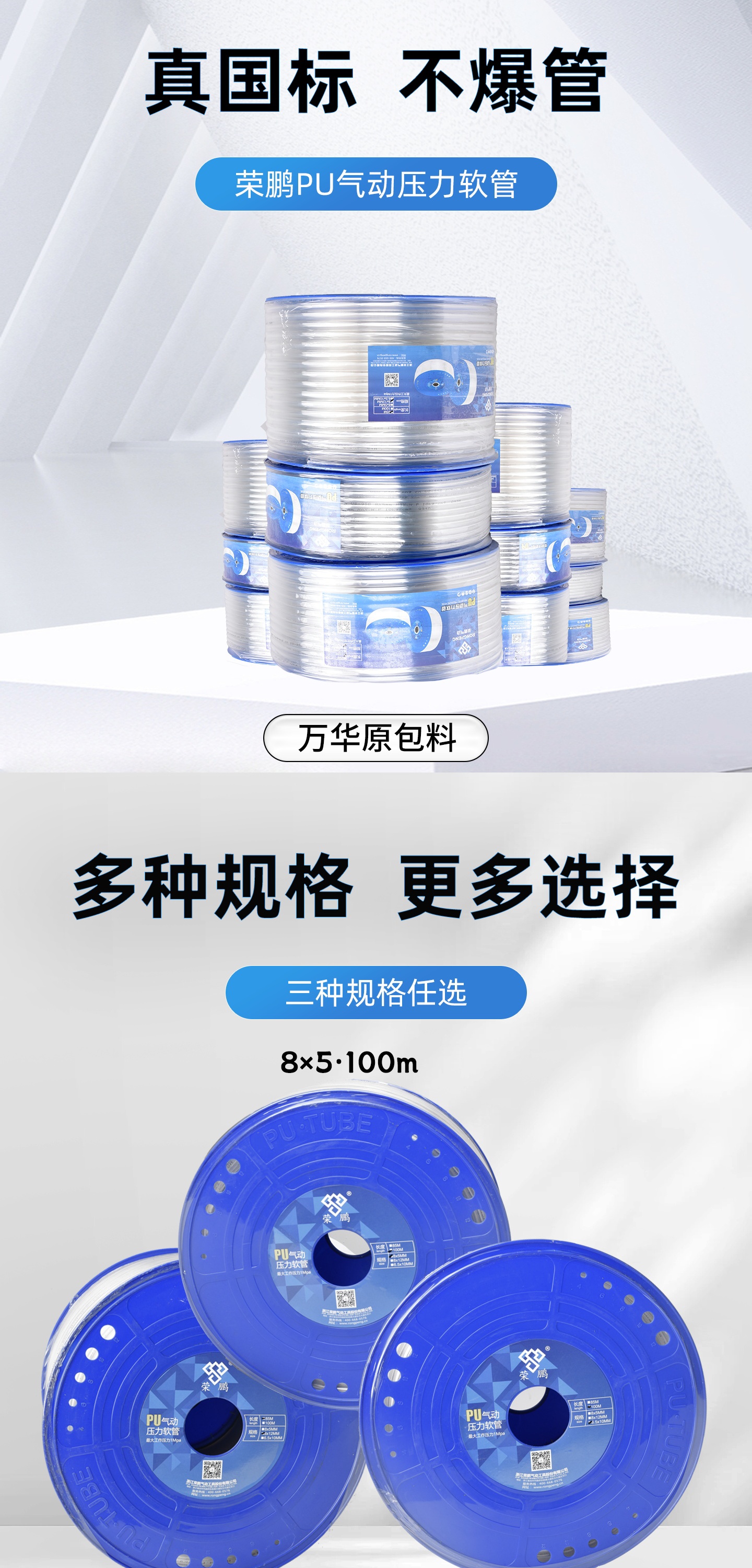 5*8 100米透明PU管-气动工具加盟代理-钉枪-喷枪-气动隔膜泵厂家-荣鹏气动工具品牌网