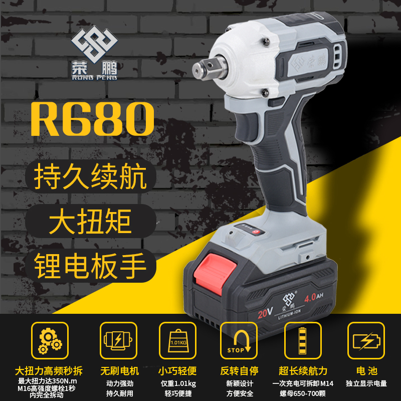 “现在,这一切都将改变!荣鹏R680无刷起子机,一款颠覆你认知的‘效率神器’来了!”它只有 2瓶矿泉水 的重量(1.01kg),却能爆发出堪比大型设备的 350Nm 惊人扭矩!高空作业更安全、长时间使用不疲劳、狭小空间操控自如。从普通的M10-M20螺栓,到高强度M10-M16螺栓,无论是设备安装、钢结构施工还是汽车维修,它都能轻松应对。 不要小看照明灯这个功能,可以描述为:“前置LED照明灯,如同为工具装上‘鹰眼’,让每一个螺丝孔都清晰可见,告别盲拧时代。而且荣鹏无刷R680锂电起子机动力更强、寿命更长、更节能、免维护。