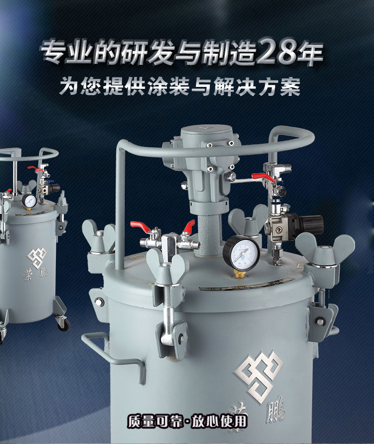 出料稳定,品质如一:凭借其稳定的压力输出和卓越的流体流动性控制,荣鹏压力桶能确保涂料出料连续、均匀。这对于追求完美表面处理的行业(如家具、汽车、金属制品)至关重要,能显著减少“橘皮”、“流挂”等现象,大幅提升产品一次合格率和整体美观度。
